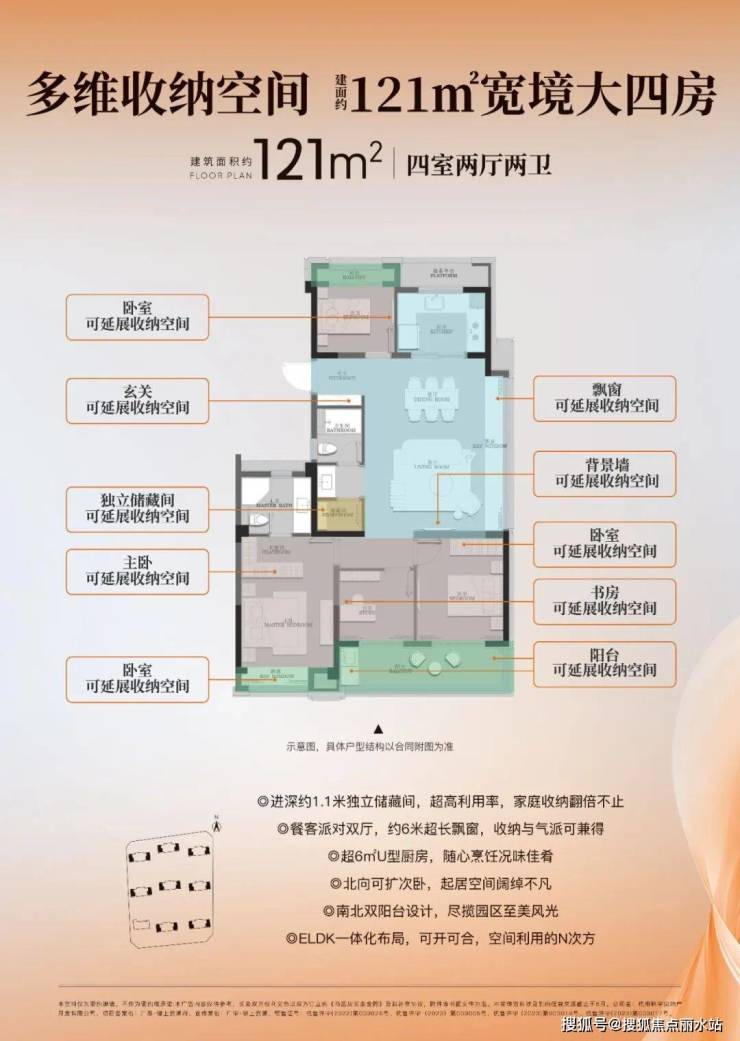 广宇·锦上云澜约121㎡户型,其空间尺度甚至可以媲美市场上不少140㎡产品。