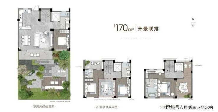建面约170平的环景联排,一层餐客一体的敞阔社交区,加上有天有地的大庭院!二层南向的双套房,均配备独立卫浴间。三层整层都是主人卧室,并且附赠超大面积露台。