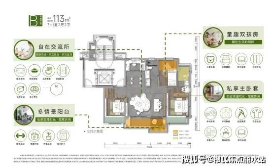 1/2阳台+飘窗+设备平台,最高赠送约16.9㎡(该户型建面约113.64㎡,仅做参考,具体以实际测量为准),以最高约99%高使用率,满足了改善客户对于“大空间”和“生活场景”的需求。