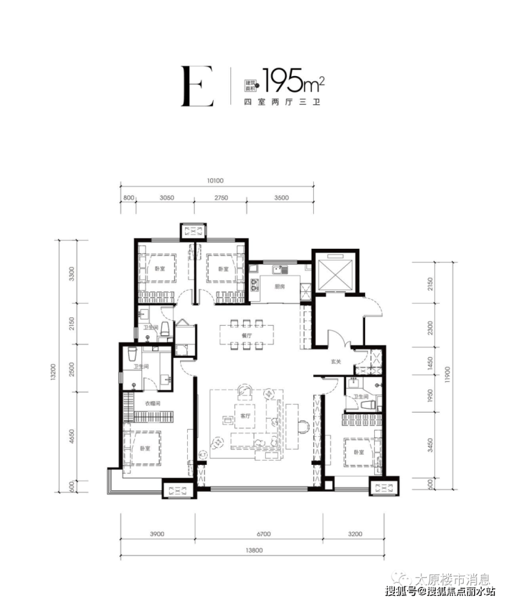 太原长风金茂悦项目的户型亮点,有着大宽厅,南侧为落地窗,每个户型有大开间,南北有短进深,