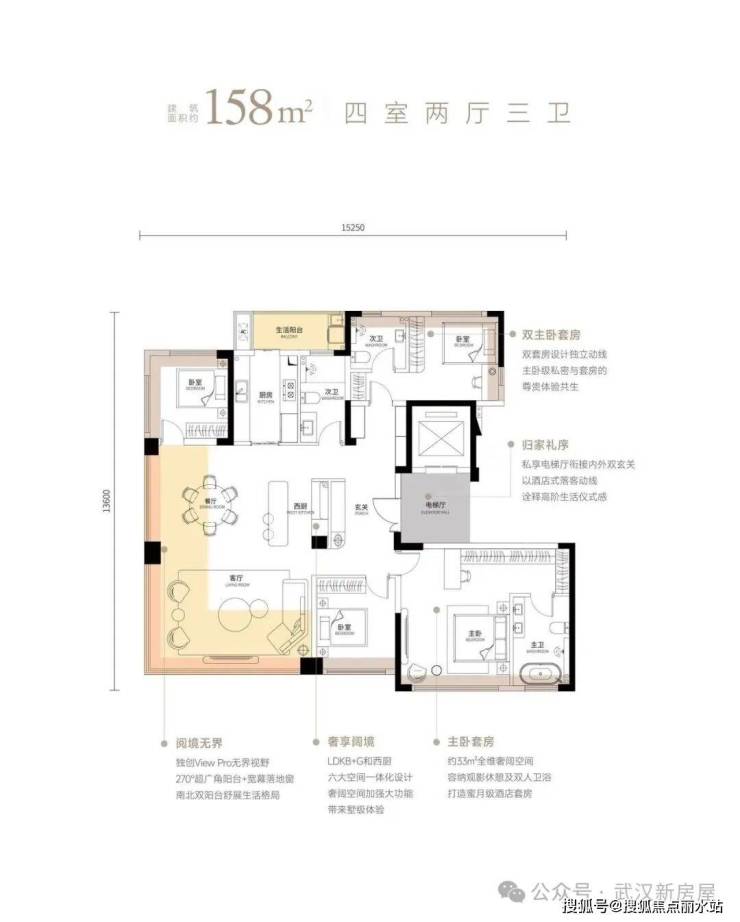 3#总高19层,一个单元,两梯两户,面积都是158㎡;