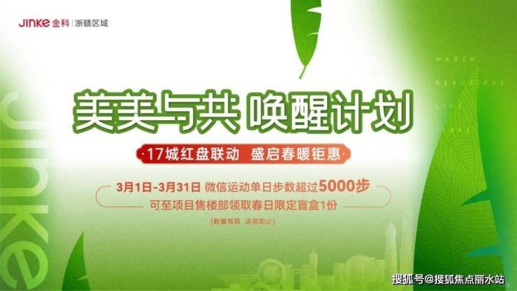 约会春天,步量城市。金科浙赣17城红盘联动,邀你感受绿色生活所带来的居住美好。自今日起至3月31日,微信运动打卡5000步以上,即可至项目售楼处领取春日限定盲盒!赶快积极参与打卡,为绿色城市生活助力!
