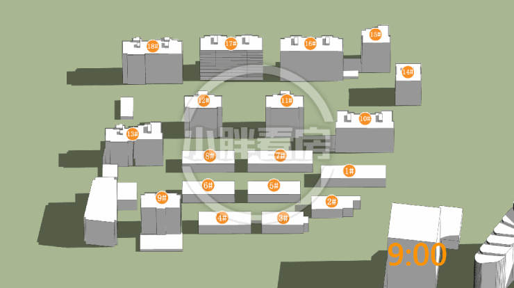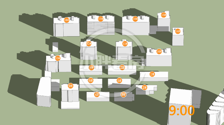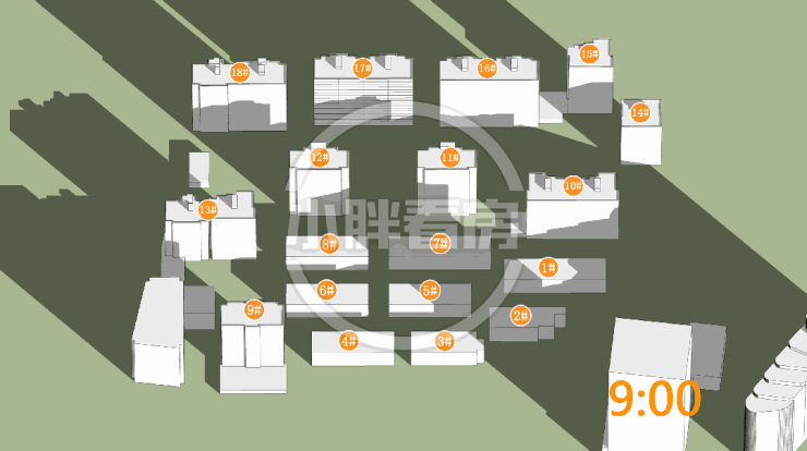夏季:楼栋朝向正南采光优异。17#中低层受遮挡。就具体遮挡时间而言,17#主要在上午和下午受16#18#遮挡。