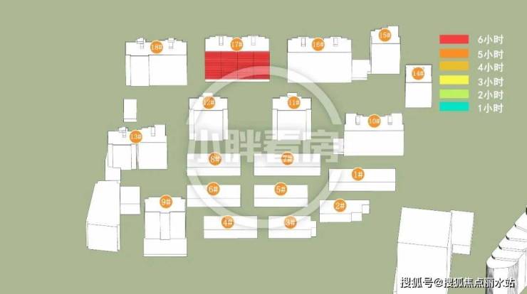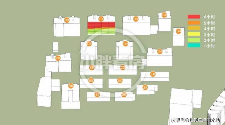 冬季:17#中低层受遮挡。就具体遮挡时间而言,17#全天不同时段均会受到遮挡。