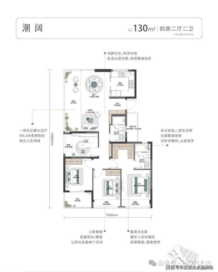 墅境洋房建筑面积约139㎡,客厅、双卧皆朝南,拥享宽屏采光视野,大四房格局满足改善高阶之享。