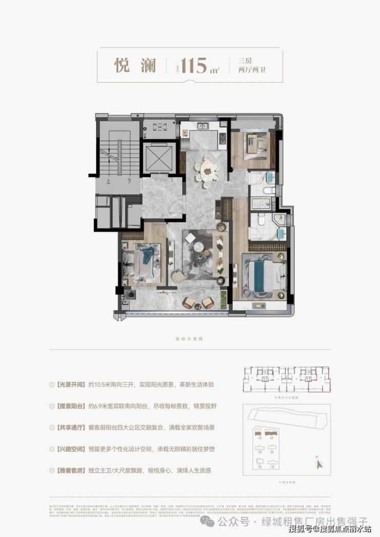 约10.5米南向光景三开 · 约6.9米宽双联南向阳台