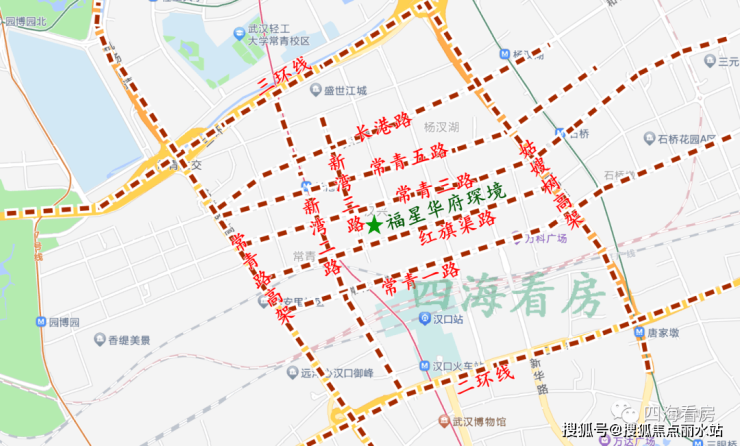 福星华府琛境位于红旗渠路与新湾三路交会处,在楼市中属于汉口火车站板块,行政划分属于江汉区,距离二环线约1.1公里,距离三环线约1.2公里,属于2.5环。