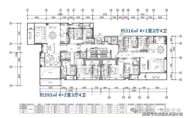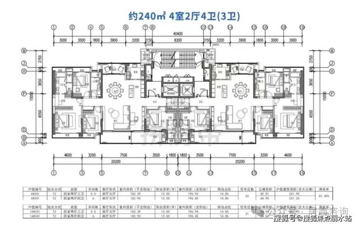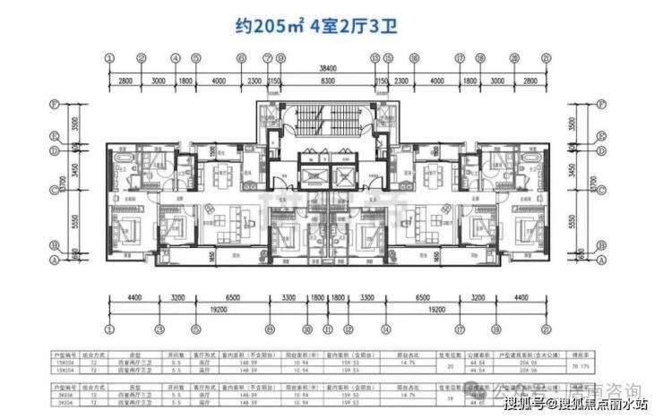 高层(19-22层),205(4/2/3)-240(4/2/3或4)-270(4+1/2/4)-316(4+1/2/4)-395(4+1/3/4),顶复610,约20000方中央景观花园、超大下沉庭院等;