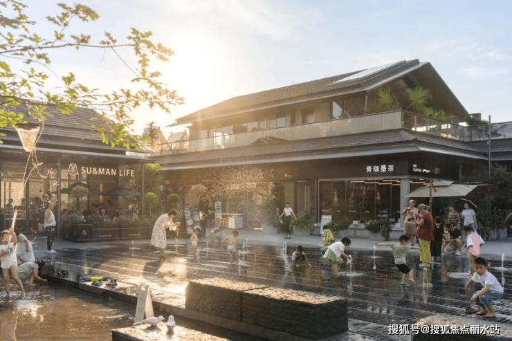 功能之上,腾达也没有忽视审美与艺术。两个商业群落分别融入了专门打造的园林景观,楼阁错落,溪水林荫,将生活场景装进自然里,东方禅意的“天地人和”一下就具象化了。