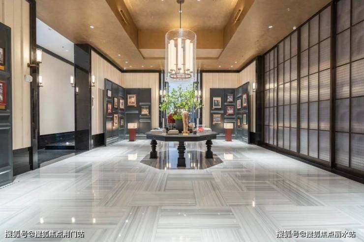 项目内部公区仪式感十足,西面小区人行入口处特意做了门厅,向里走是双景观水系、中心花园、集中绿地、下沉庭院等等。