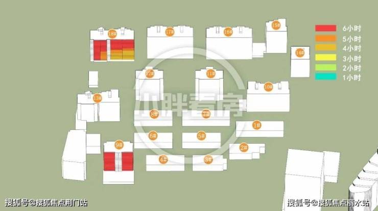 绿城湖映金沙的分析结果是这样:计算已考虑周边所有建筑的影响,结果表明东南部商业不会对本次开盘楼栋产生遮挡,楼栋仅受地块内部影响。(说明:本文日照数据基于公示规划图纸文件,使用专业制作工具完成,仅供参考)