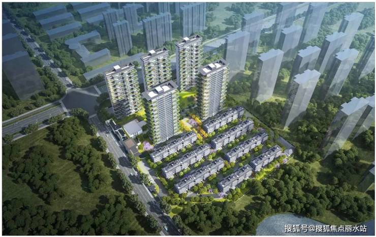 先来看高层部分,打造4栋25F+1栋24F,全部为第四代住宅,从曝光的效果图来看,可以看出北侧3幢楼和南侧2幢的露台打造手法不同,北侧3幢露台集中在建筑南侧,另外两幢的露台则在东西边侧。