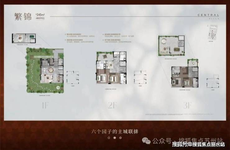建面约245㎡联排,4房3厅6卫,南向三开间格局,最大程度提高采光通风效果,二层北侧设计超大露台,适合瞰景赏月,三层采用双套房设计,兼具实用性与舒适性,另有约90-168㎡宽阔庭院和约133-157㎡灵活空间可自行改造。