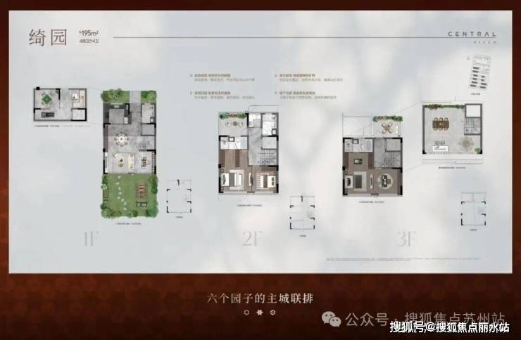 建面约195㎡联排,4房3厅4卫,客厅连接庭院在视觉上延伸空间,另含约55㎡私家庭院与约89-98㎡拓展空间,可根据需求打造为儿童乐园、茶室等多元化空间。售楼处电话400-8787-098接通后输入5678【营销中心】