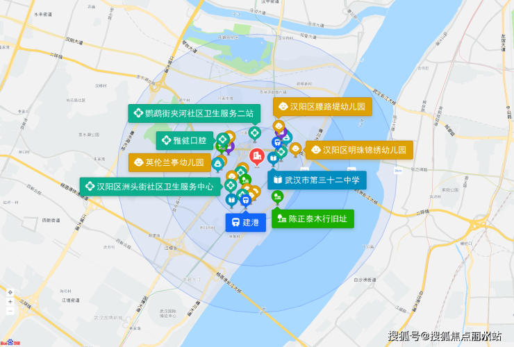 楼盘直线3km范围内有2个一级及以上医院。其中武汉市第五医院距离楼盘1.9km,武汉市汉阳医院距离楼盘2.3km,为医疗需求提供了保障。