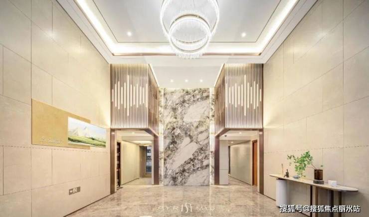 尊崇归家:南向约5.7米挑高星级入户大堂,采用大理石板修饰,精奢阔绰,极大提升了归家的仪式感和尊崇感。