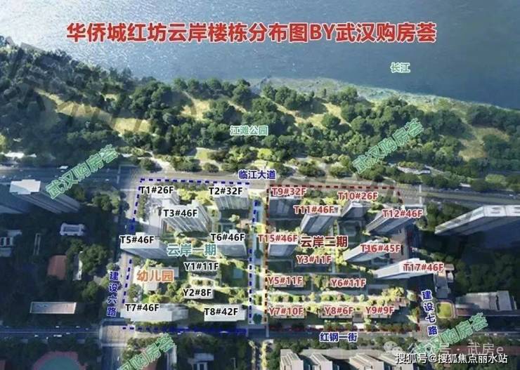 华侨城红坊云岸二期,位于临江大道与建设七路交汇处,隔壁是云岸一期,一路之隔就是青山江滩公园、长江。