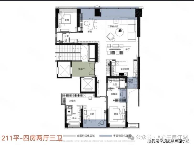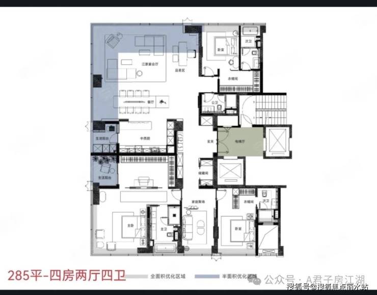 产品定位:面积段203-407㎡,主力户型270㎡,主打270°江景客厅、总统套房级主卧,均价约4.2万-4.5万元/㎡