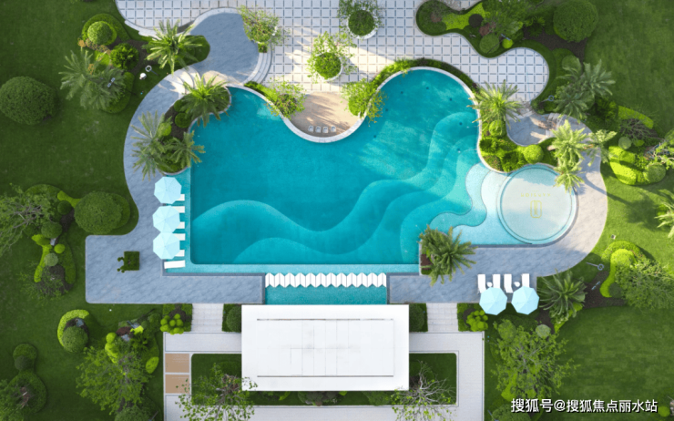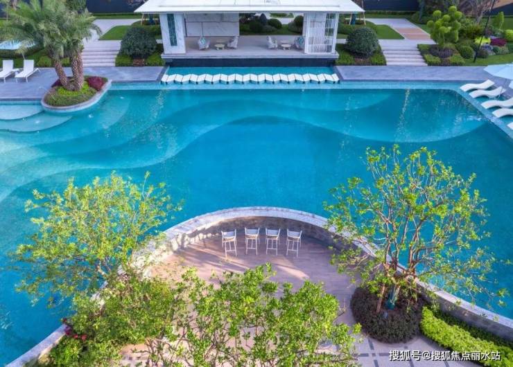 这种“楼座全面屏”的设计不仅提升了室内的通透感,更让居住者仿佛置身于自然之中:推窗即见泳池,全景式棕榈海岛泳池和椰林浅滩的热带风情,让人仿佛瞬间穿越到度假胜地,享受一场身体与心灵的彻底放松。