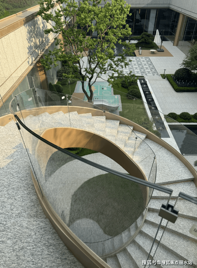 沿着斥百万巨资打造的旋转扶梯而下,滨江城投·和品精心打造的下沉式庭院映入眼帘:水系景观打造出曲水流觞的意境,让业主可享观景、听声、休憩、会友等景观体验。