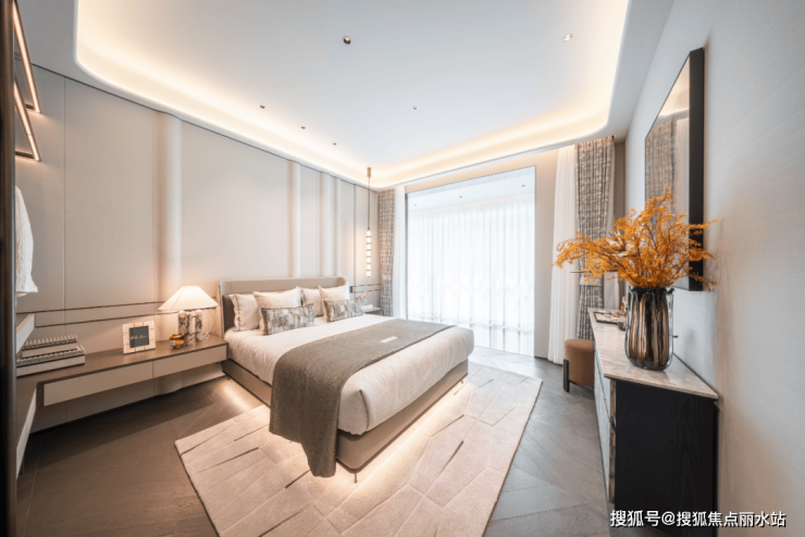 建面约70多㎡宽绰的空间尺度,让主卧成为了集休息、放松与自我提升于一体的私人领地;衣帽间的巧妙分离,即使在一个套房内,也给到男女主人一个各自独处沉淀的空间。