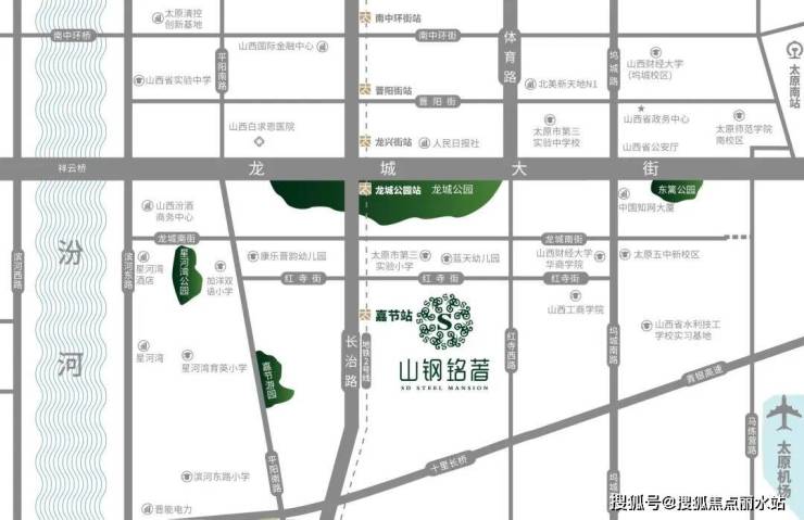 山钢铭著,位于太原南城正核心——龙城大街。项目西邻地铁2号线嘉节站和公交维保站,出行通畅快捷;北望龙城公园,是南城最大的市立公园;往东不远处是太原新五中,全省升学率前三;周边山西白求恩医院,是全省规模最大、功能最全、标准最高的现代化综合医院。