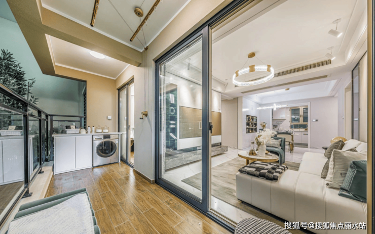 约7米面宽的大横厅,这在同面积段市场中极为罕见;南向超大阳台的设置,可以很好地规划出赏景区与晾晒区,进一步拓宽多维生活。