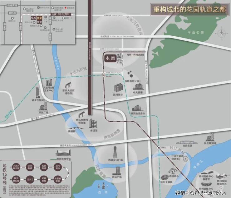 无缝接驳地铁15号线(规划),纵贯南北,一路串联运河新城、江河汇、亚运村、奥体世纪城、拱宸桥等多个核心区域,并可换乘8条线路(2;3;4;5;6;7;9;18),以时代速度畅达杭城各处,打造城北TOD新标杆。