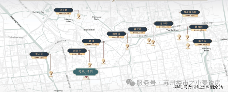 建发·璟园,盘踞城市文化遗产中轴上,周边约5公里内享西园寺、寒山寺、山塘街、留园等10处名胜古迹环伺,驾车约15分钟即可到达。