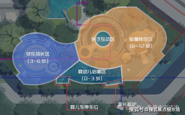 规划0-12岁的约530㎡儿童分龄主题乐园,在这里成长的小孩,记住的不是手机上的游戏,而应是在社区里玩耍时留下的汗水。