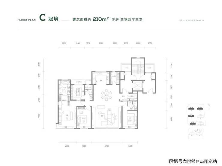 项目共规划建面约175㎡荣耀大宅及建面约210㎡孤品洋房两大住宅产品