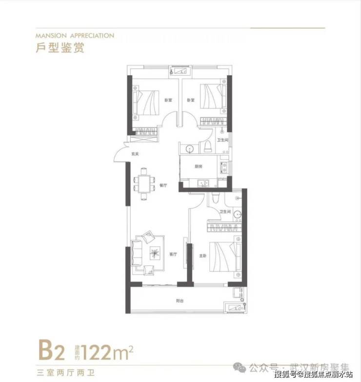C2户型——118㎡三室两厅两卫方正格局:户户通透,三开间朝南,餐客一体:拓展室内公共空间瞰景宽境:南向约6.7M阳台