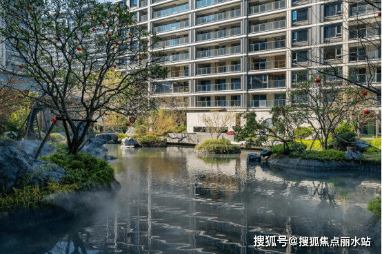 项目精心打造了一个约3万平方米的中式园林生活环境——随处可见的庭院、中式景墙,还有昂贵的太湖石、黑山石点缀景色,漫步其间,仿佛踏入了一幅江南水墨画里。