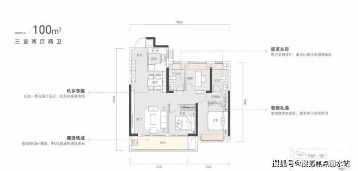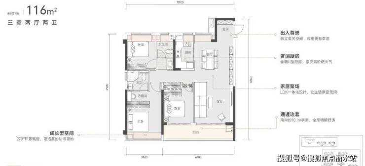 2.三开间朝南,超长南向面宽约9.8米,再加上5.7米的大阳台,充满自然光线和明媚的阳光