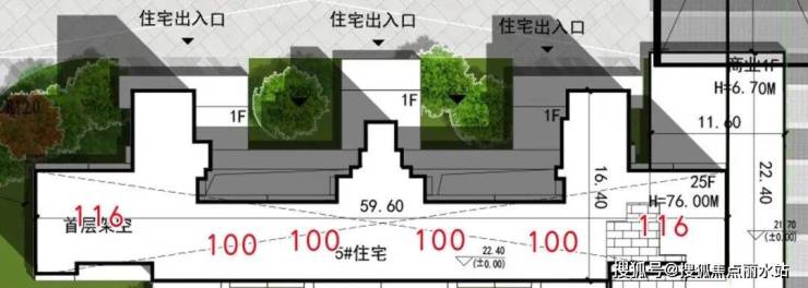 25层,2个户型,建面约100㎡和116㎡,三梯六户