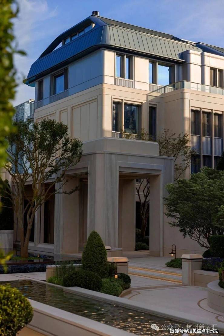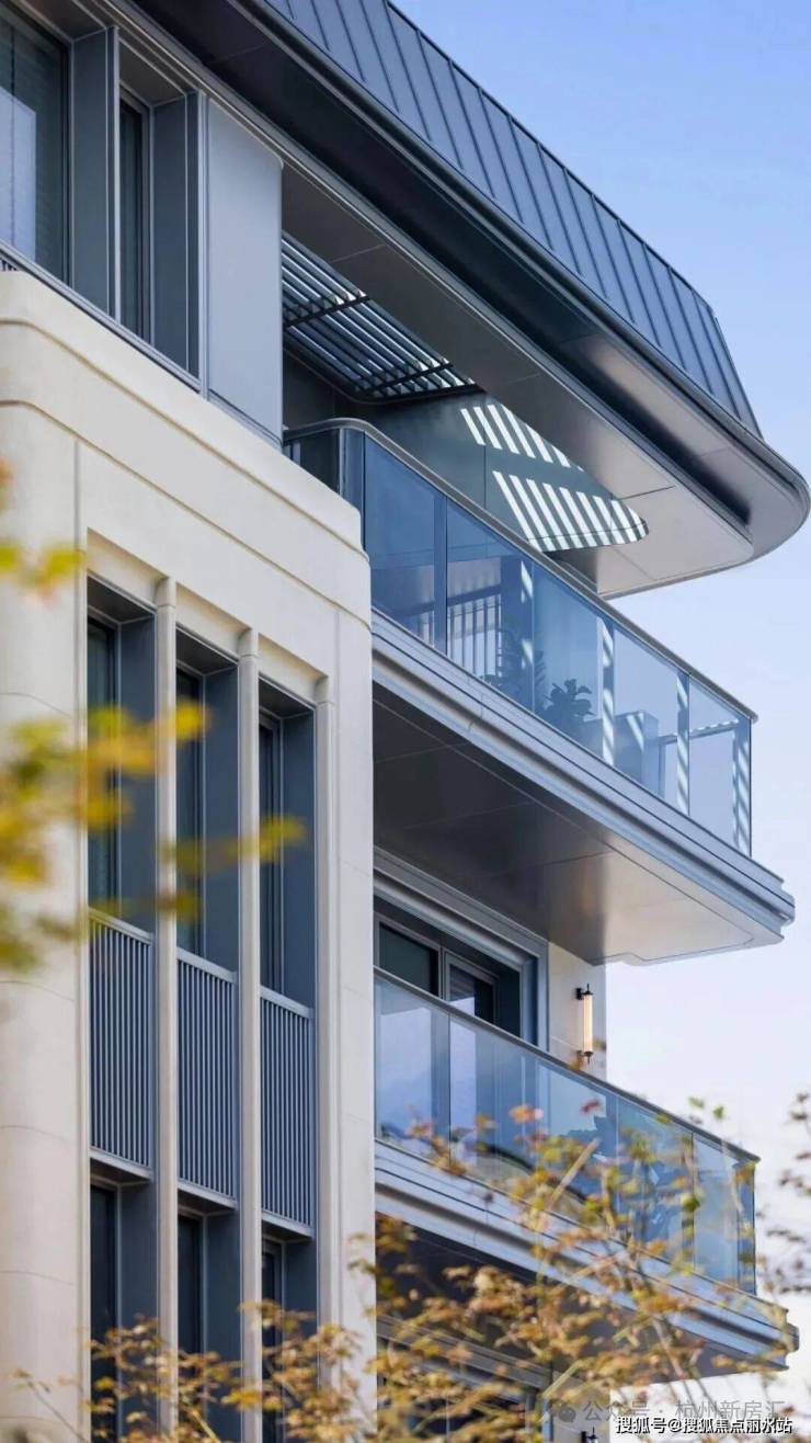 项目萃取西湖北山街民国建筑灵感,将新新饭店类孟莎式屋顶、欧式竖条窗进行当代转译,以进口莱姆石、铝板搭配大面玻璃,勾勒出兼具复古韵味与现代感的建筑轮廓。西湖民国基因与真材实料的质感,重新定义高端湖居品质。