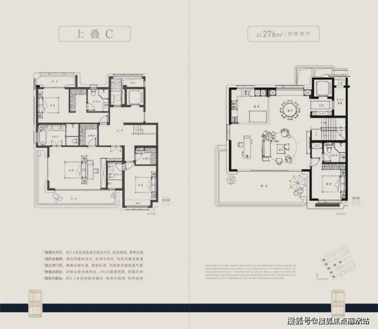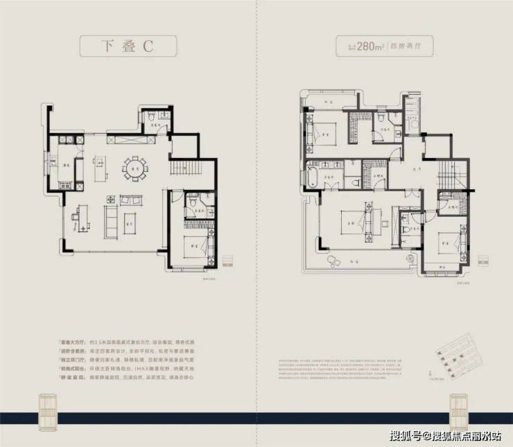建面约210-280㎡纯4层叠墅,通过上叠北庭下叠南院,独立归家动线、约6m层高地下空间与全套房设计等,推动叠墅空间进化。精装上,嘉格纳、博世等百年品牌加持,尽显极简优雅。