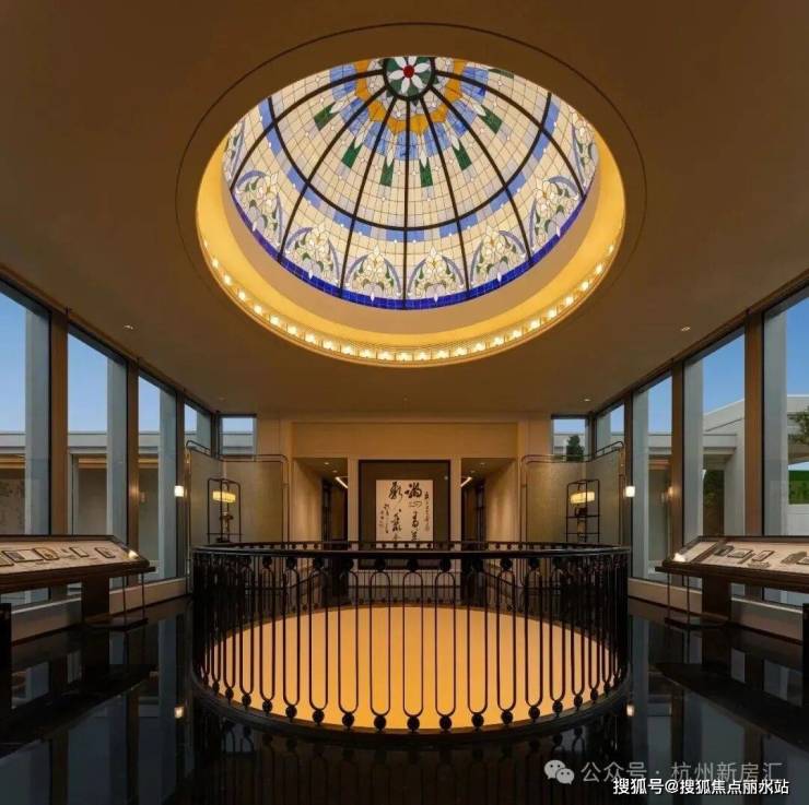 园区里,70年树龄老桩紫薇、桂博园同款椭圆丹桂、水珐景墙旁的乔木红枫,搭配景泰蓝、蓝翡翠等全球进口奢石,把世界珍藏化作私家庭景。大堂室内璀璨的穹顶花窗,是从西湖历史建筑中复刻而来的。