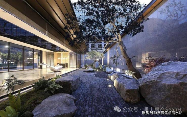 撷取中式园林意境,融贯东方禅意营造体验式园林,理山叠水,将山水、花鸟、亭台水榭隐于园林中。