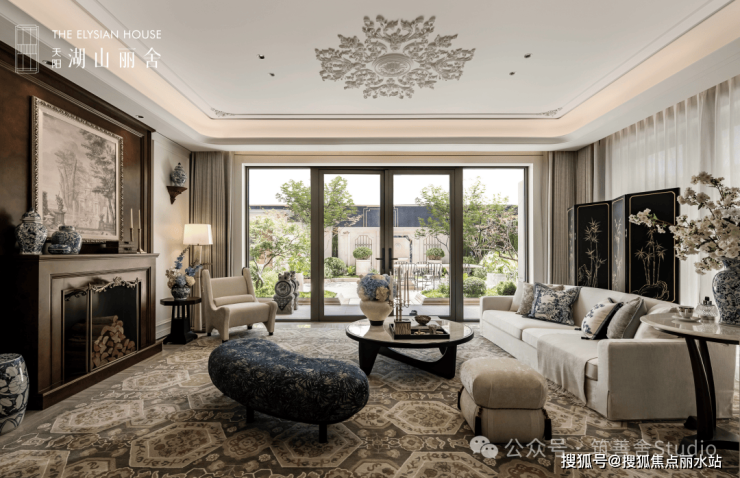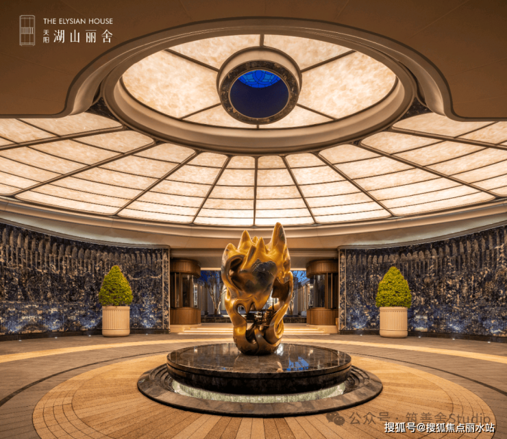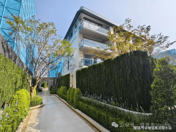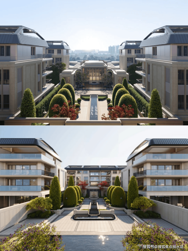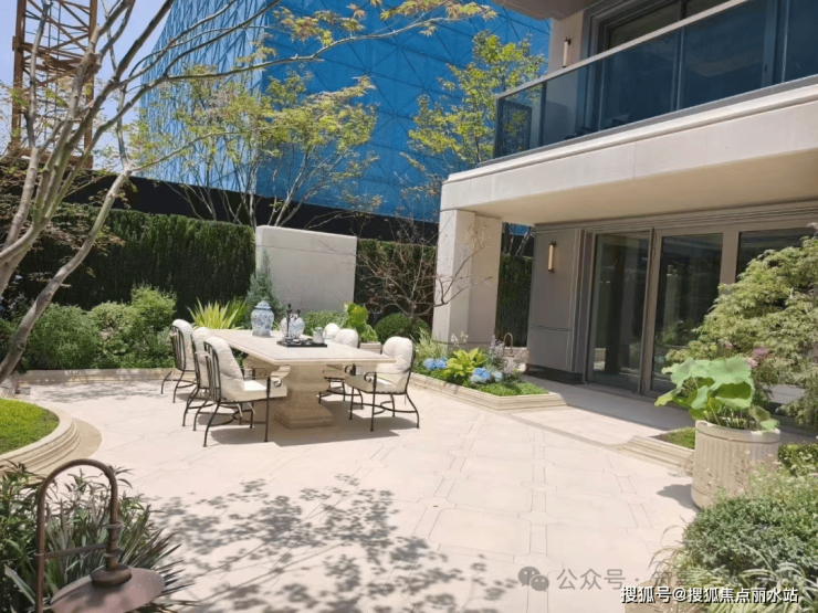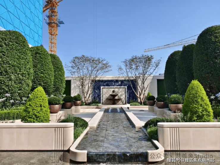 中庭景观借鉴法式园林的对称美学,构筑中轴景观。