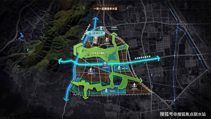 《龙泉湖片区单元层级详细规划(公示稿)》明确该片区“城市后花园”定位,通过“一环、一芯、两带、多片区”空间结构,形成“生态+居住+产业”协同发展格局。一方面,完善综合服务功能,构建5-10分钟生活圈和15分钟生活圈,引入双三甲医疗、15年全龄教育链及智慧交通系统;另一方面,强化产业协同,依托山前大道文旅带(露营基地、文化市集等)和未来产业片区,吸引绿色科技企业入驻,推动“生态涵养边缘区”向“产城融合核心区”跃升,实现“望山亲水、宜居宜业”的理想图景。