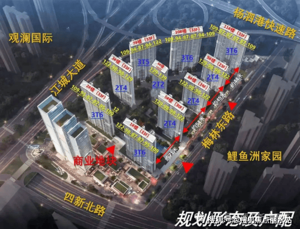 3、项目东侧是江城大道、北边是杨泗港快速通道,都是城市快速路,要注意噪音影响。江城大道是地面快速路,各方向左转十分不便。项目南侧约600米有在建的地铁11号线四期梅林站,同时该站点也是与规划10号线的换乘站,10号线能否进入第五轮还不好说。