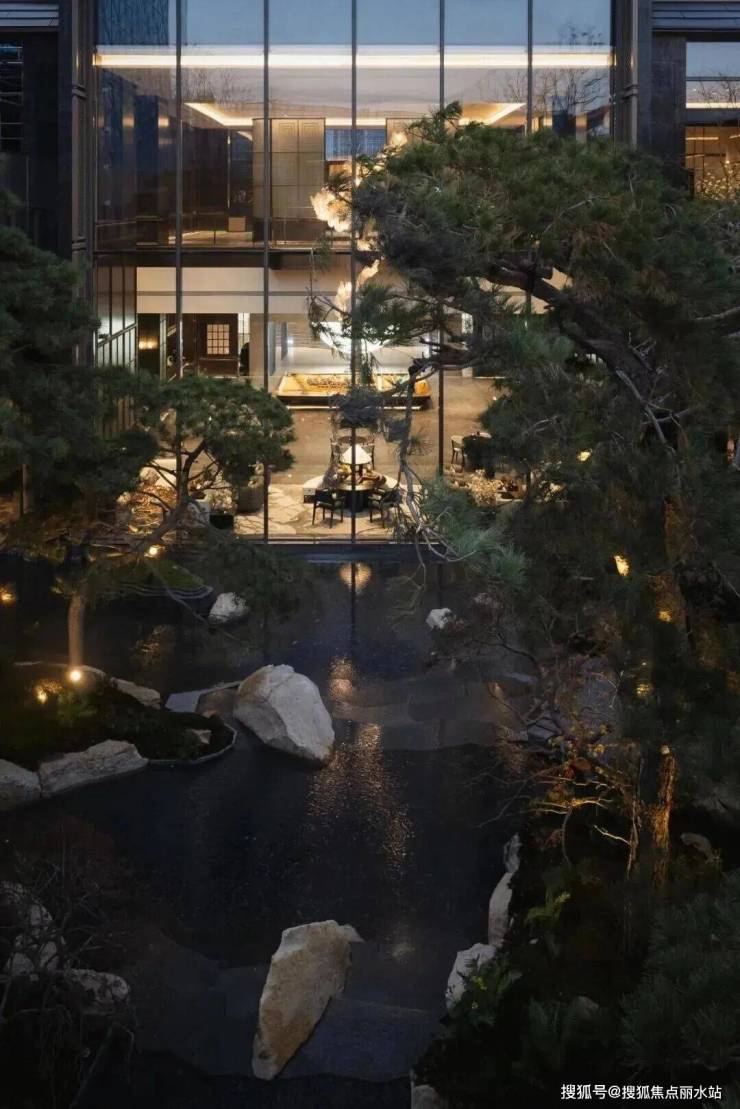 九株全冠油松以雾森为纱,在晨昏中勾勒出“松枝邀月”的剪影,脚下忽闻水声潺潺,是设计师用“八音涧”的智慧,让飞瀑在青石上弹奏的《高山流水》。
