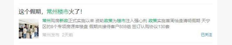 常州发布也对此进行了官方报道,购房新政正式实施以来资助政策为楼市注入强心剂,咨询量、交易量大幅提升,各大区域的补贴楼盘均呈现爆火的状态。