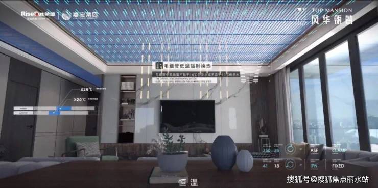 此外,标配的六恒科技系统,通过风冷热泵系统、毛细管顶棚辐射系统、置换新风系统等等配置,营造出了恒温、恒湿、恒氧、恒洁、恒智的生活环境。