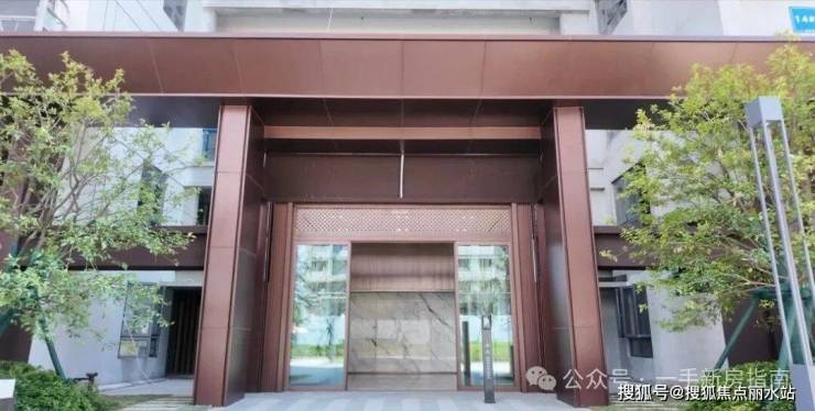 项目在售一期打造了地上、地下双精装入户大堂,并且进行了全方位升级。比如入口处的电动玻璃门上方嵌入镂空图案,增加视觉美感,打破传统门体的厚重感。