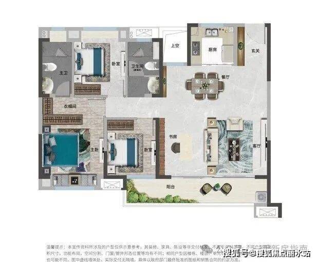项目样板间也真实呈现了拓展空间多、高空间利用率的产品力特点,建面约108平的三房,约3.6米面宽的通透主卧,尺度堪比市面上建面更大户型的客厅尺寸,居住感受持平市面上部分建面约120平产品,真正实现居住体验跃级提升。
