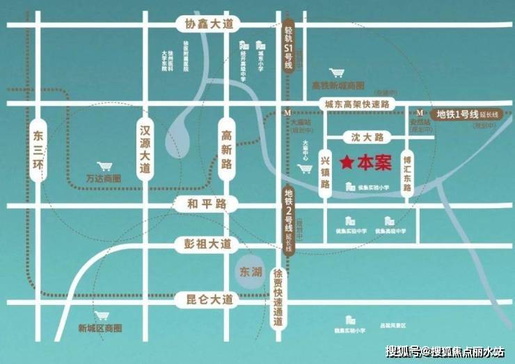 汇川府位于徐州高铁新城商务区-大庙板块,大庙是“8+1”试点小城市之一,兼具城市副中心功能。随着无锡徐州工业园区开工奠基,大庙迎来新的发展契机,未来将成为集生产生活、科技创新于一体的高精尖产城融合型未来新城。项目总规划17栋楼,其中住宅15栋约1400户,星级酒店1栋,综合办公楼1栋,汇川府集住宅、商业、办公、娱乐于一体的多元化业态,未来必将成为高铁商务新城的TOD新地标,占据东城未来核芯C位。