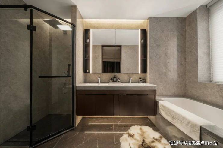 在主人私享的主卫中,望品配置杜拉维特双台盆和浴缸、汉斯格雅的恒温花洒,堪比五星级行政套房的享受。