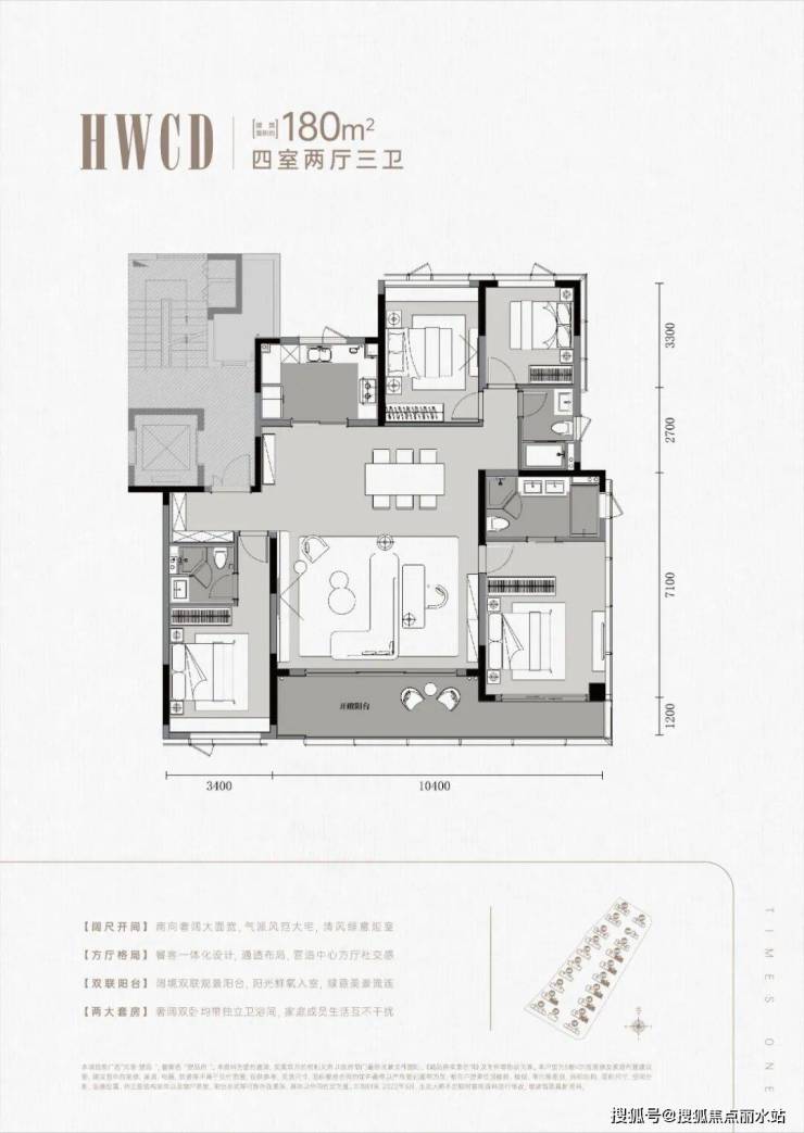 得益于一梯两户设计,以及洋房的高得房率,元垄·望品的建面约180㎡户型,四房两厅三卫,不仅实现“双套房”,户型尺度上也极为阔气。